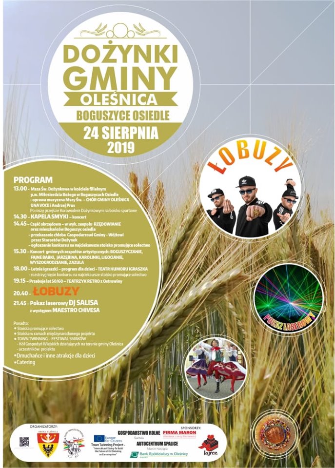 Już za tydzień, 24 sierpnia gmina Oleśnica będzie świętować dożynki. Impreza odbędzie się w Boguszycach. Nie zabraknie występów lokalnych zespołów, ale będzie też gwiazda wieczoru, a w tej roli wystąpi w tym roku zespół Łobuzy.