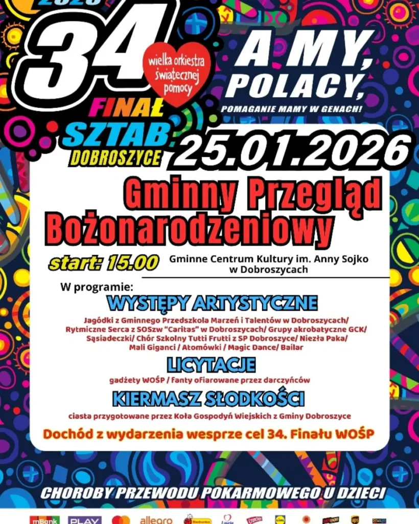 Wydarzenie rozpocznie się o godzinie 15:00 w siedzibie GCK. Tegoroczny finał będzie połączony z Gminnym Przeglądem Bożonarodzeniowym, który zapowiada się niezwykle barwnie i rodzinnie. Na scenie zaprezentują się dzieci i młodzież w różnorodnych występach artystycznych – nie zabraknie śpiewu, tańca oraz pokazów taneczno-akrobatycznych, które z pewnością dostarczą widzom wielu emocji.