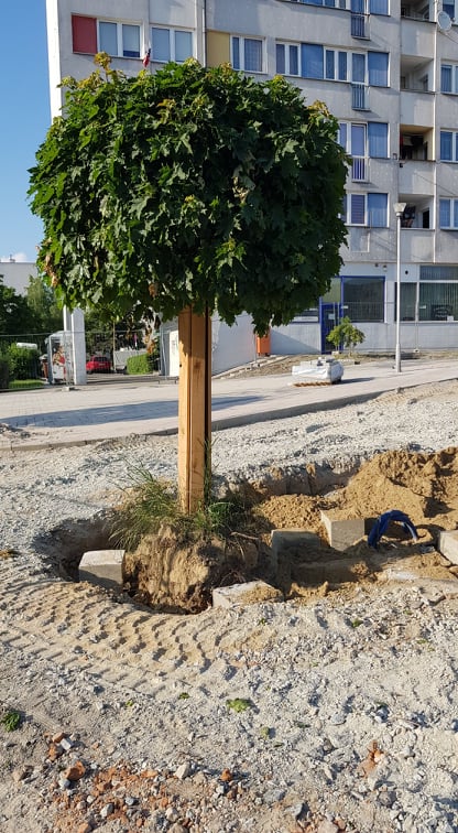 Naczelnik wydziału architektury i budownictwa w oleśnickim magistracie zapewnia, że drzewka zostały dobrze zabezpieczone. – Być może stan niektórych z nich to efekt suszy – mówi urzędnik, podkreślając, że obejrzy je podczas najbliższej wizyty na remontowanym placu. – Drewniane zabezpieczenia miały na celu ochronę drzew – zapewnia Leszek Goliński.
