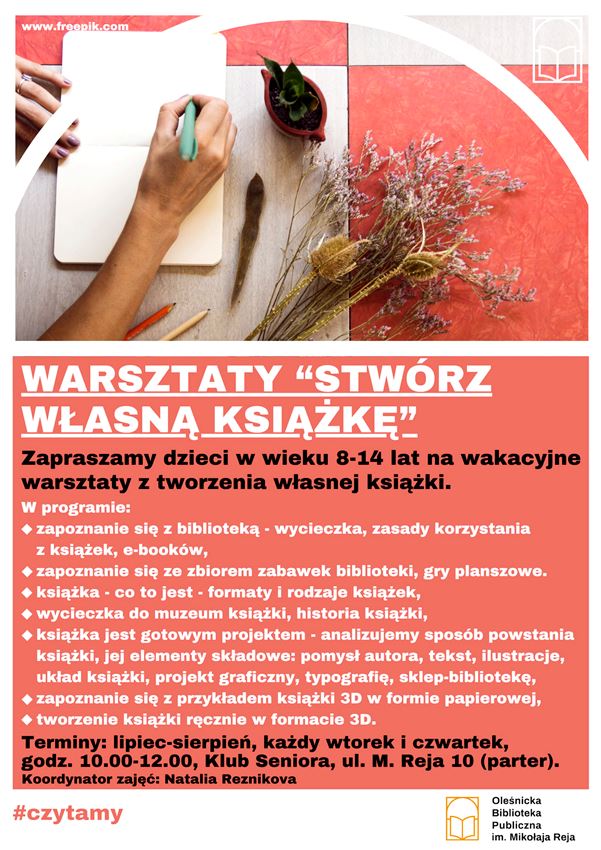 Oleśnicka biblioteka oraz Klub „Dookoła słońca: Polska i Ukraina razem” zapraszają dzieci w wieku 8-14 lat do udziału w warsztatach tworzenia książki!