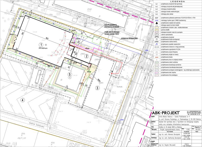 Zakład Budynków Komunalnych w Oleśnicy: Budowa hali sportowej wraz z łącznikiem do istniejącego budynku Szkoły Podstawowej nr 4 przy ul. Ignacego Paderewskiego 2 w Oleśnicy oraz niezbędną infrastrukturą towarzyszącą.