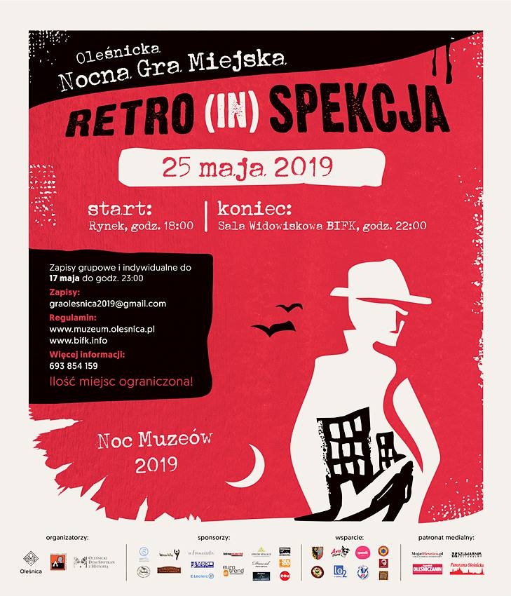 Oleśnicka Nocna Gra Miejska Retro(in)spekcja ma charakter kryminalny i toczy się w przedwojennej Oleśnicy. Zabawa polega na rozwiązaniu zagadki, której głównymi bohaterami są oleśnicki policjant Hans Müller oraz artystka lokalnego teatru Gertrud Schiltz. Po drodze uczestnicy skupieni w 10-osobowych drużynach muszą wspólnie wykonać szereg zaskakujących zadań, bez których rozwiązanie zagadki jest niemożliwe. Niezbędna jest podstawowa znajomość topografii miasta, realiów życia codziennego i kulturalnego tamtego okresu. Szczegóły dostępne są w Regulaminie dostępnym na stronie www.bifk.info i muzeum.olesnica.pl.