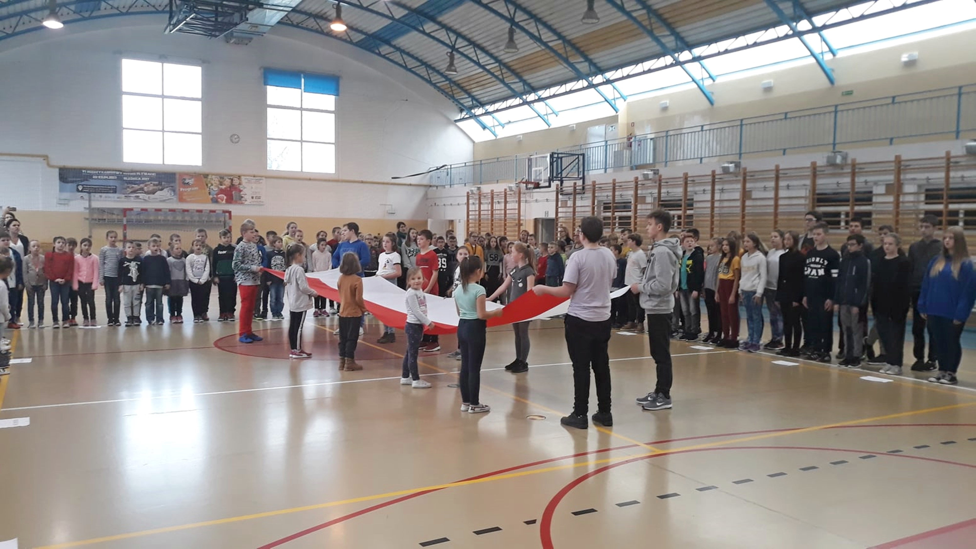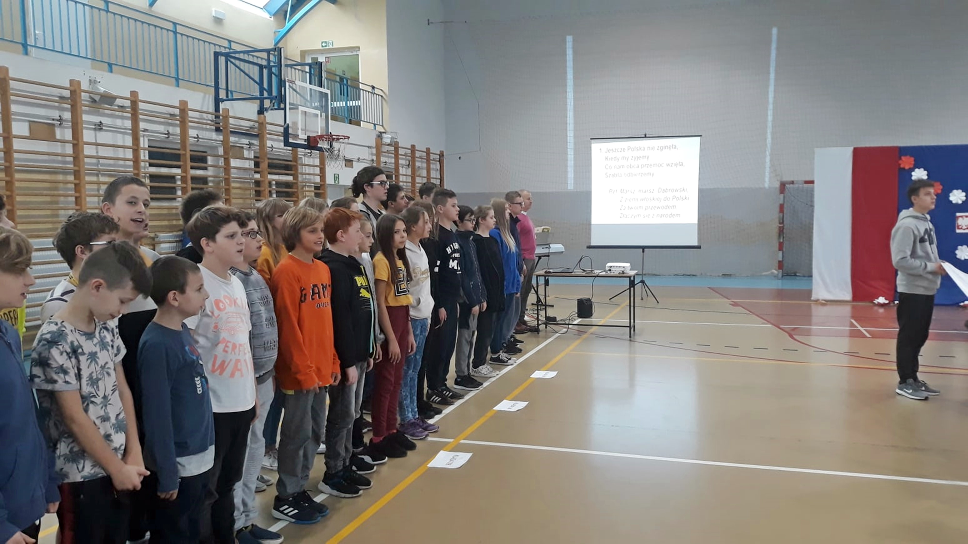Uczniowie z Sokołowic dołączyli do akcji i śpiewali hymn
