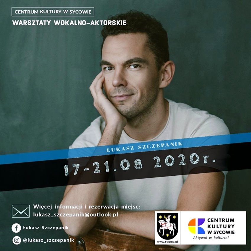 – Co za radocha, że poprowadzę warsztaty wokalno-aktorskie w Centrum Kultury w Sycowie – napisał Łukasz. – To przecież tam stawiałem swoje pierwsze artystyczne kroki! Hej, młodzieży z Sycowa i okolic – ZAPRASZAM BARDZO! 5 dni w trzecim tygodniu sierpnia. Będzie się działo.