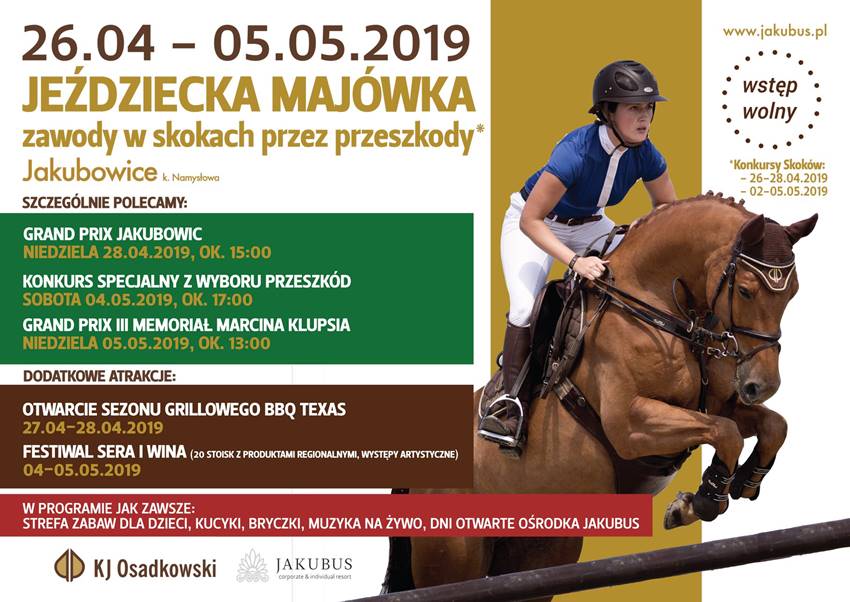Od 26 kwietnia do 5 maja, w Jakubowicach koło Namysłowa, potrwa Jeździecka Majówka, którą organizuje Klub Jeździecki Osadkowski.
