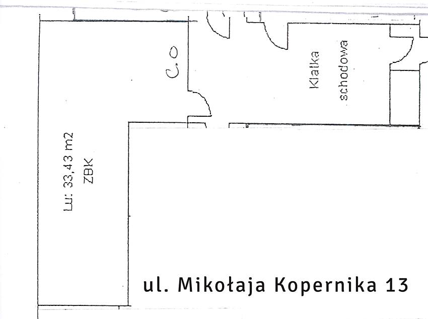 • o godz. 13.00 ul. Mikołaja Kopernika 13, o powierzchni użytkowej 33,43 m², z przeznaczeniem na działalność usługową. Stawka wywoławcza wynosi 10,00 zł netto/m², minimalna wysokość postąpienia 1,00 zł, wadium w wysokości 66,00 zł,