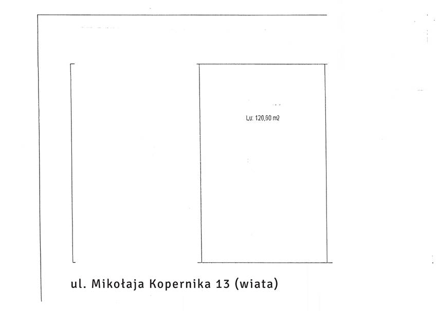 • o godz. 11.00 ul. Mikołaja Kopernika 13 (wiata), o powierzchni użytkowej 120,60 m², z przeznaczeniem na działalność usługową. Stawka wywoławcza wynosi 10,00 zł netto/m², minimalna wysokość postąpienia 1,00 zł, wadium w wysokości 240,00 zł,