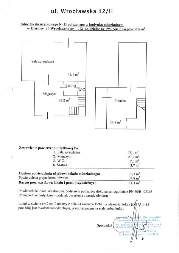 Uwaga: Lokal użytkowy przy ul. Wrocławskiej 12/II położony jest w budynku znajdującym się w strefie objętej ochroną konserwatorską.