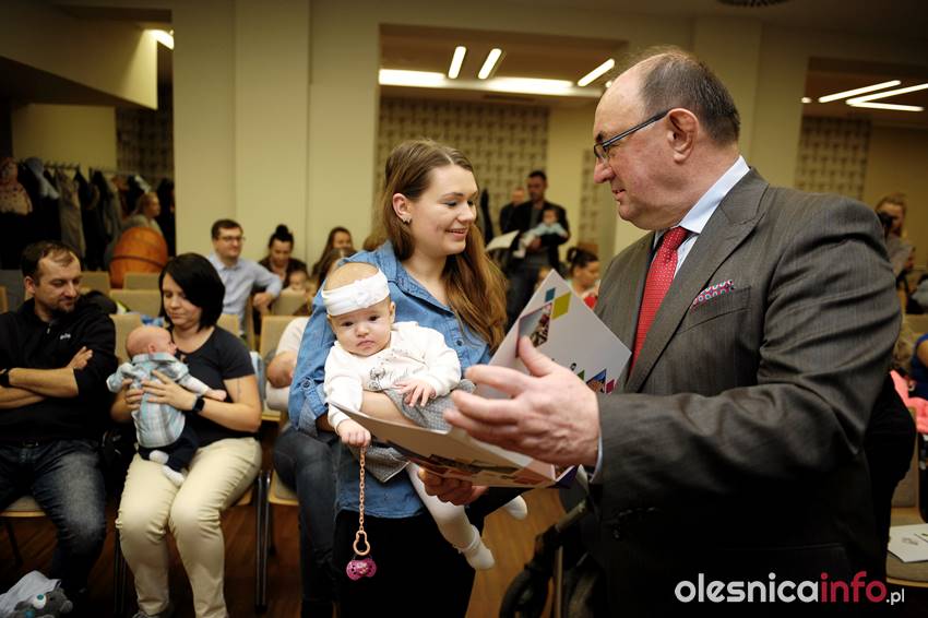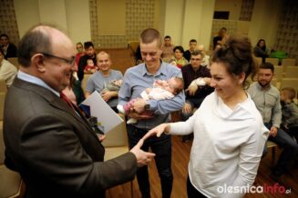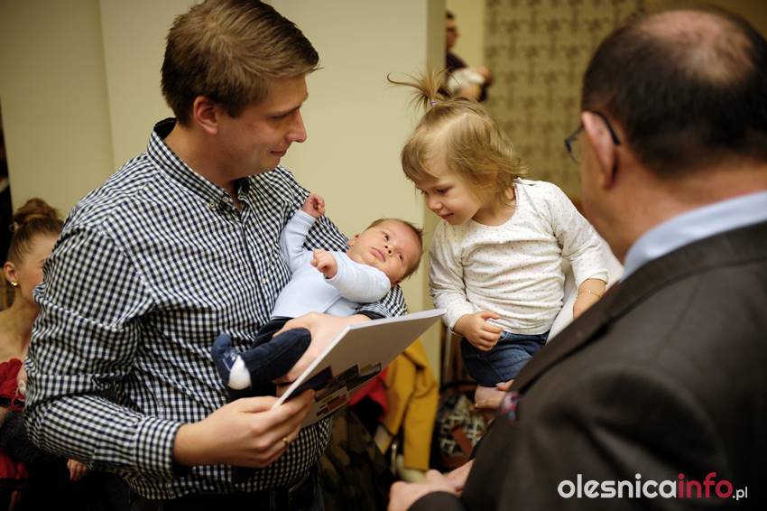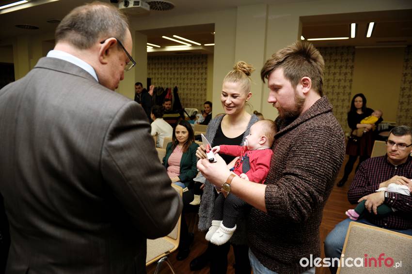 Tradycyjnie już maluchy i ich rodziców przywitał burmistrz Jan Bronś, który pochwalił się, że już za miesiąc jego rodzina powiększy się o nowego członka. – Zostanę dziadkiem – uśmiechnął się.