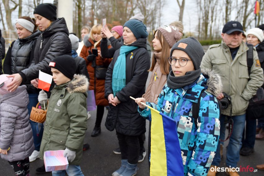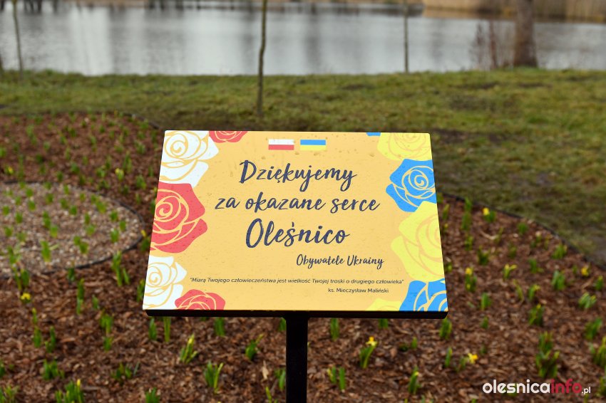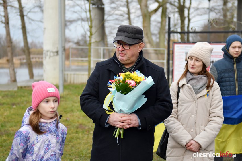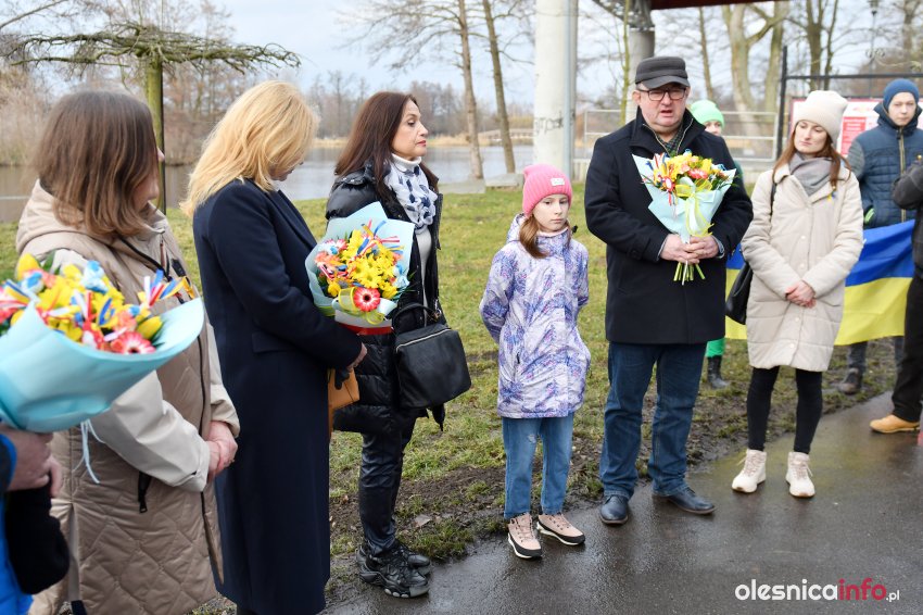 Dzisiaj przy oleśnickim amfiteatrze odbyła się uroczystość mającą upamiętnić pierwszą rocznicę napaści Rosji na Ukrainę. Władze miasta spotkały się z mieszkającymi w Oleśnicy Ukraińcami na nowym skwerku przy oleśnickim amfiteatrze. Pojawiła się tam także tablica z podziękowaniem dla mieszkańców naszego miasta za serce okazane uciekającym przed wojną.