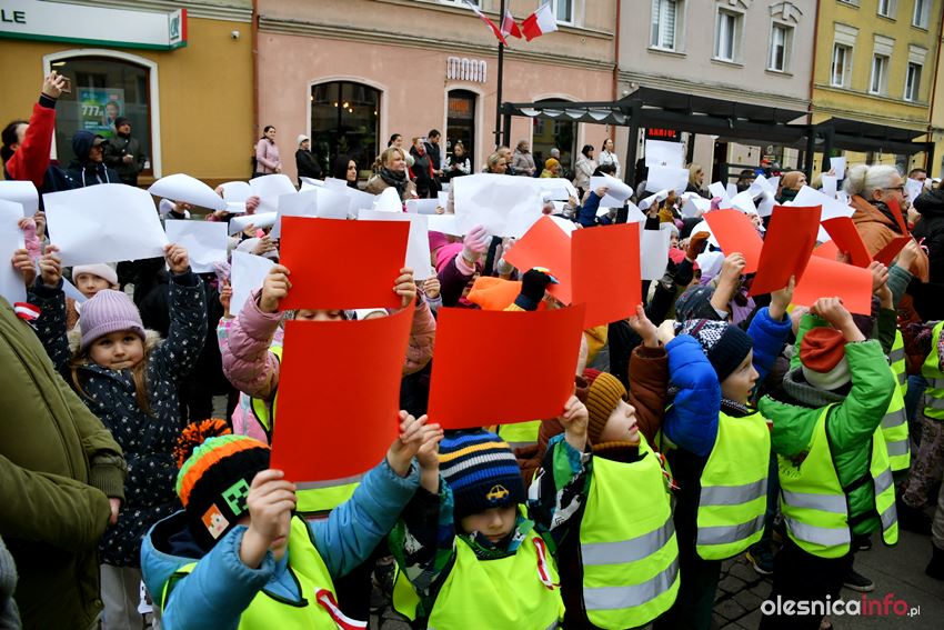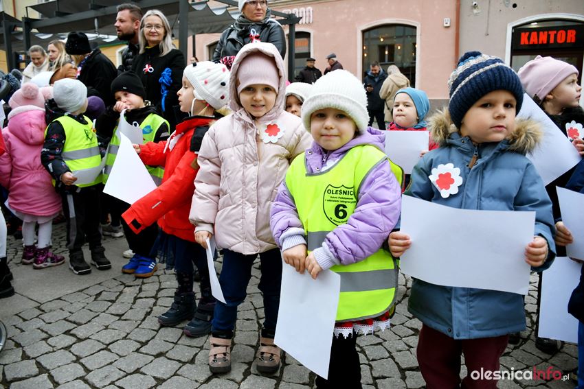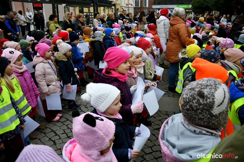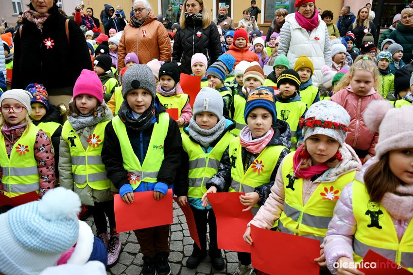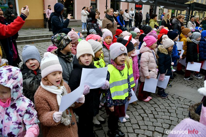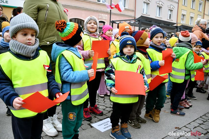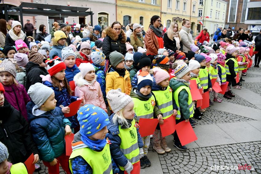 Dziś na oleśnickim rynku odbyła się uroczystość śpiewania hymnu przez oleśnickie przedszkolaki. Uroczystość, jak co roku, przygotowało Przedszkole n1, w imieniu których uczestników wydarzenia powitała Elżbieta Krowicka. Dzieci otrzymały upominki z rąk burmistrza Adama Horbacza.