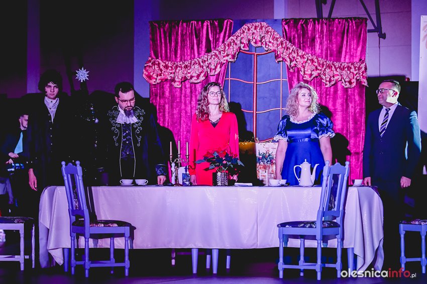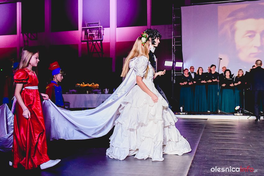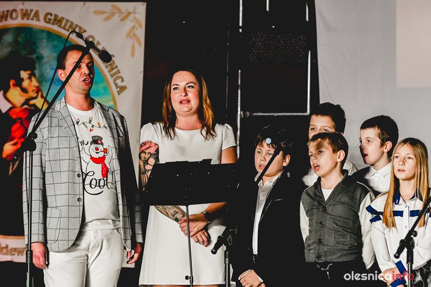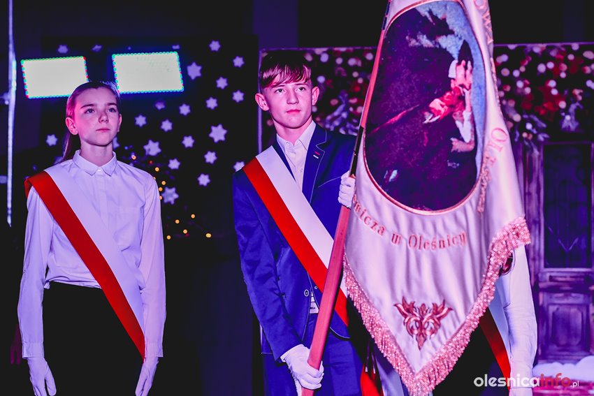Poloneza, wraz z uczniami, zatańczyli dyrektorka szkoły Agnieszka Grondowa, dyrektorka Gminnego Ośrodka Kultury Gminy Oleśnica Monika Małobęcka-Wzgarda, wójt Marcin Kasina oraz Arkadiusz Cichosz z GOK.