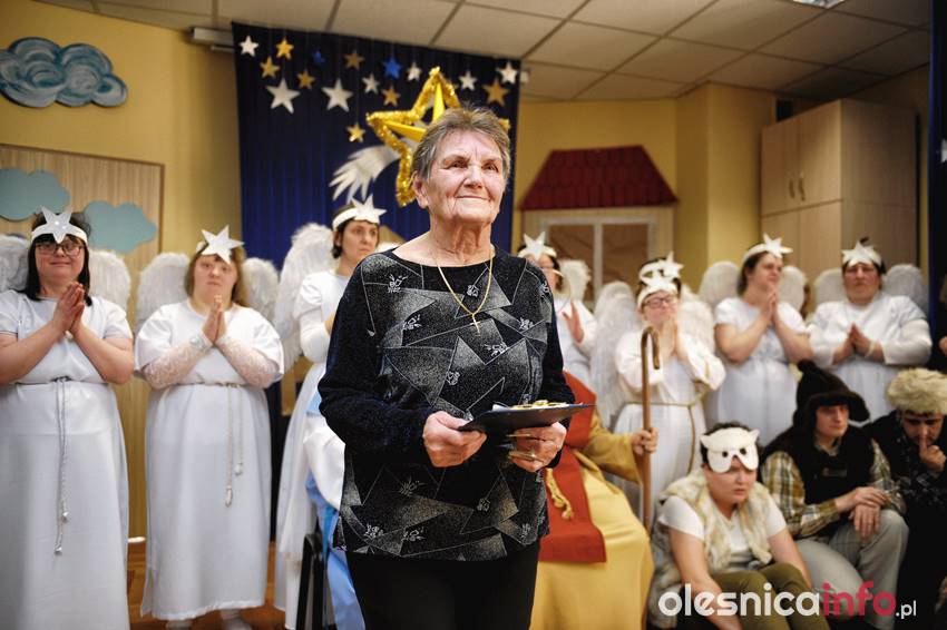 Gościem honorowym spotkania był Jan Bronś. – Jestem pod wrażeniem waszego występu. Myślę, że tyle ile jest tu otwartości i prawdy, to w żadnym innym miejscu nie ma – powiedział burmistrz Oleśnicy. Podopieczni zaprezentowali jasełka w formie pantomimy. Do występu przygotowały ich panie Justyna Walczak i Urszula Smolak-Dziki. Na wszystkich czekał też słodki poczęstunek.
