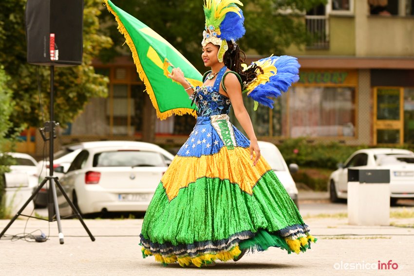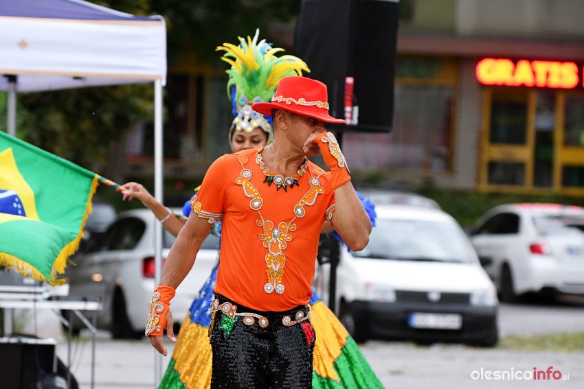 Pokaz taneczny zespołu Samba. Art zapoczątkował dzisiejsze wydarzenie na oleśnickim pl. Zwycięstwa. Po występie ma się odbyć potańcówka na świeżym powietrzu.