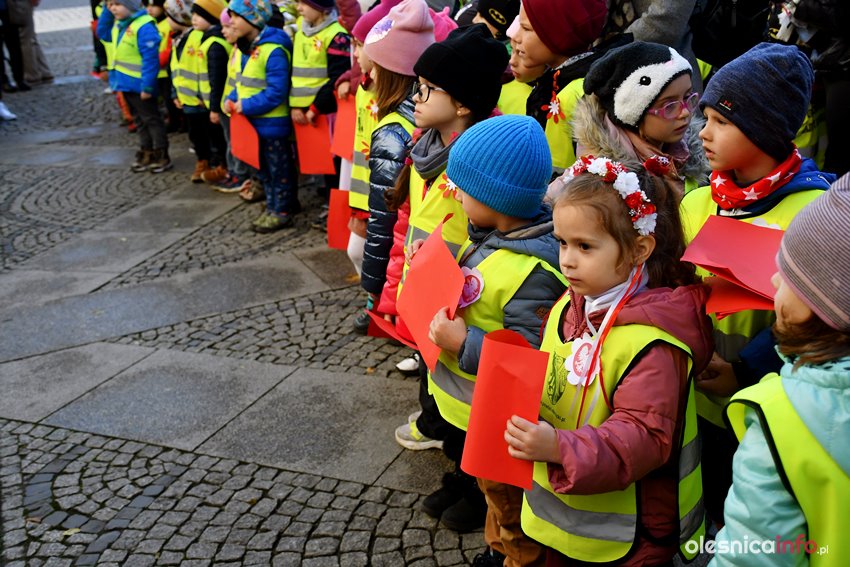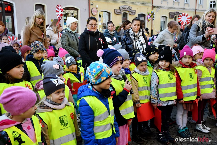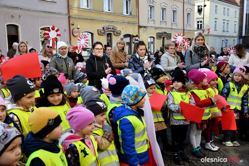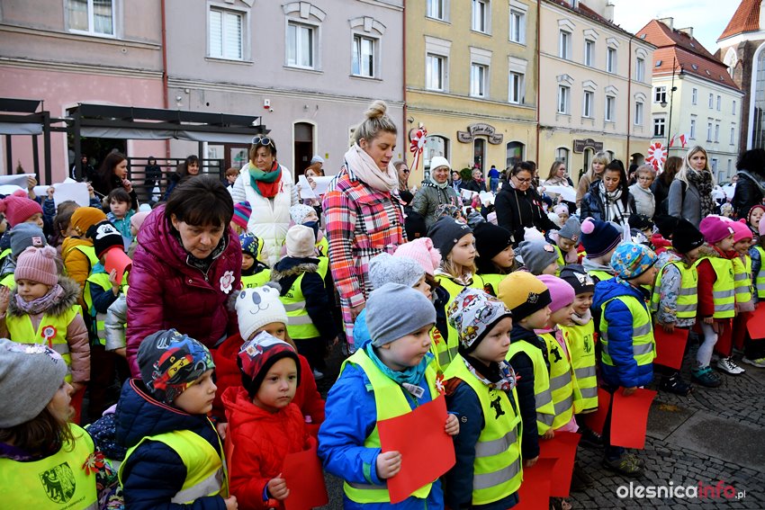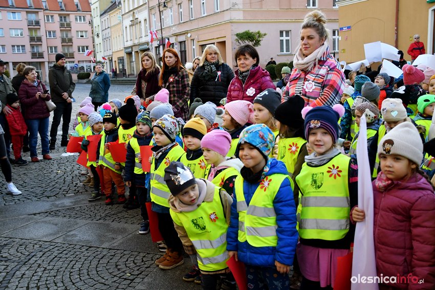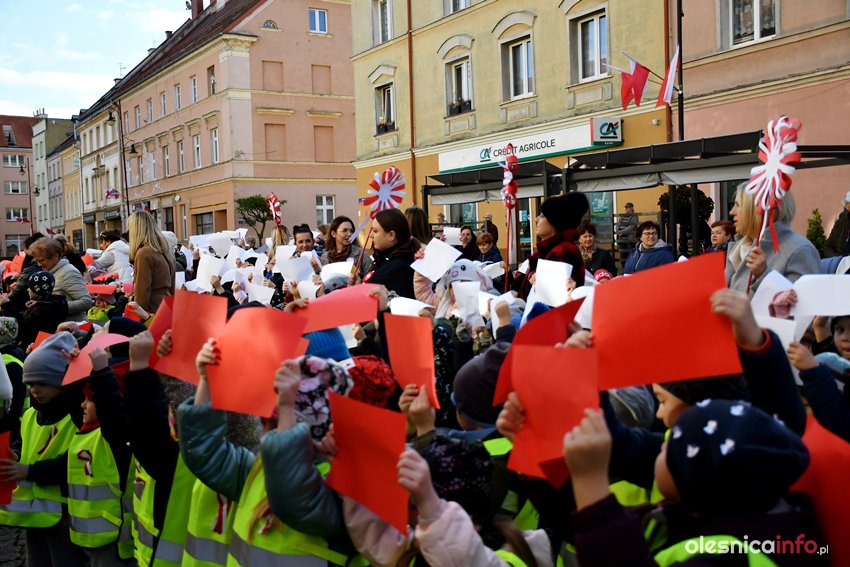Przedszkole nr 1 w Oleśnicy kolejny raz zaprosiło placówki z terenu miasta do wspólnego śpiewania hymnu państwowego na Rynku w Oleśnicy. Uroczystość rozpoczęła się punktualnie o godz. 11.11. Wzięli w niej udział także przedstawiciele władz miasta na czele z burmistrzem Janem Bronsiem oraz wiceburmistrz Edytą Małys-Niczypor.