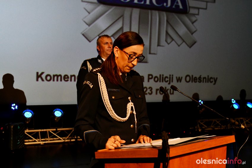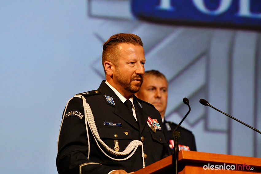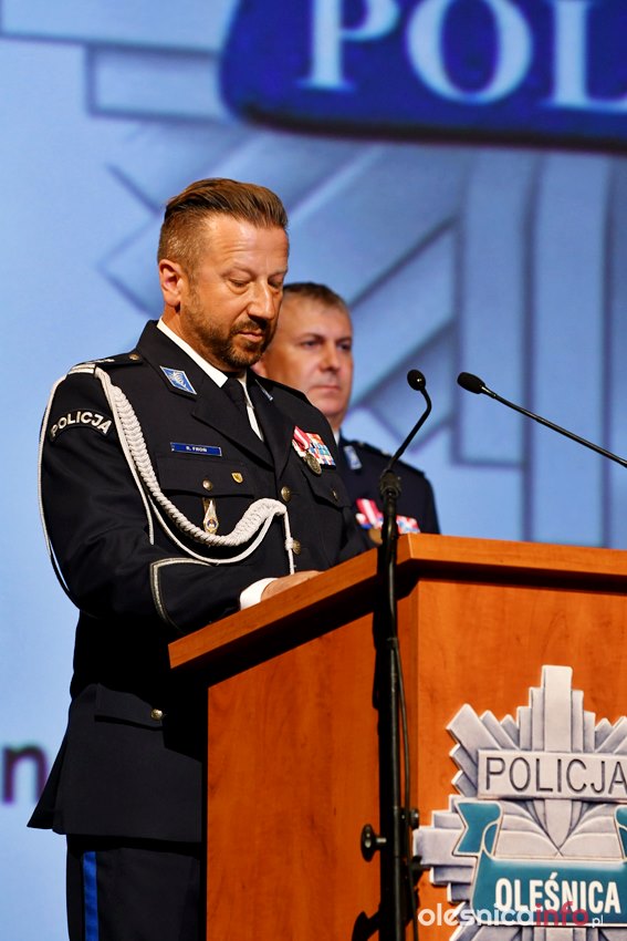 Uroczystość rozpoczął komendant Robert Froń, który dziękował policjantom za służbę oraz wszystkim, którzy na co dzień współpracują z oleśnicką komendą. Począwszy od samorządowców po szefów innych służb, dyrektorów instytucji, organizacji.