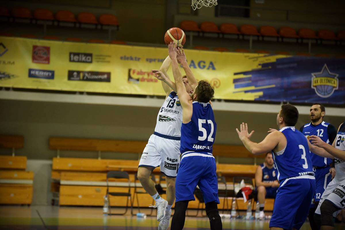 To było bardzo wyrównane spotkanie. Pierwszą kwartę oleśniczanie przegrali nieznacznie 21:22. W drugiej przyspieszyli nieco tempo i na przerwę schodzili prowadząc 45:42. W drugiej części obraz gry się nie zmienił. Po trzech kwartach Team-Plast Koszykarski Klub Oleśnica prowadził, ale różnicą zaledwie jednego punktu 60:59. Jeszcze na kilkanaście sekund przed końcem regulaminowego czasu gry ekipa Marcina Stacha prowadziła różnicą trzech oczek, po dwóch celnych rzutach osobistych. W samej końcówce piłkę przejęli jednak rywale i równo z końcową syreną oddali celny rzut za trzy punkty, którym doprowadzili do dogrywki. W doliczonym czasie gospodarzom grało się łatwiej, bo rywale musieli sobie radzić w osłabieniu. Ostatecznie zespół Piotra Gliniaka stanął na wysokości zadania wygrywając 94:84.