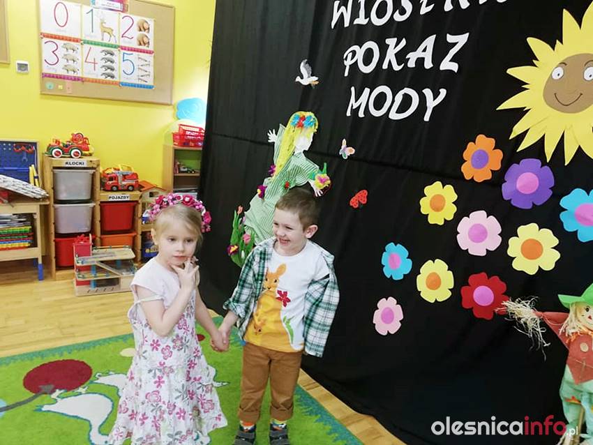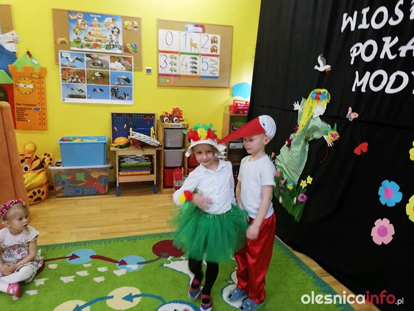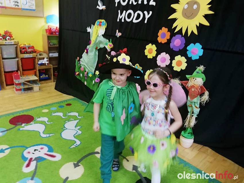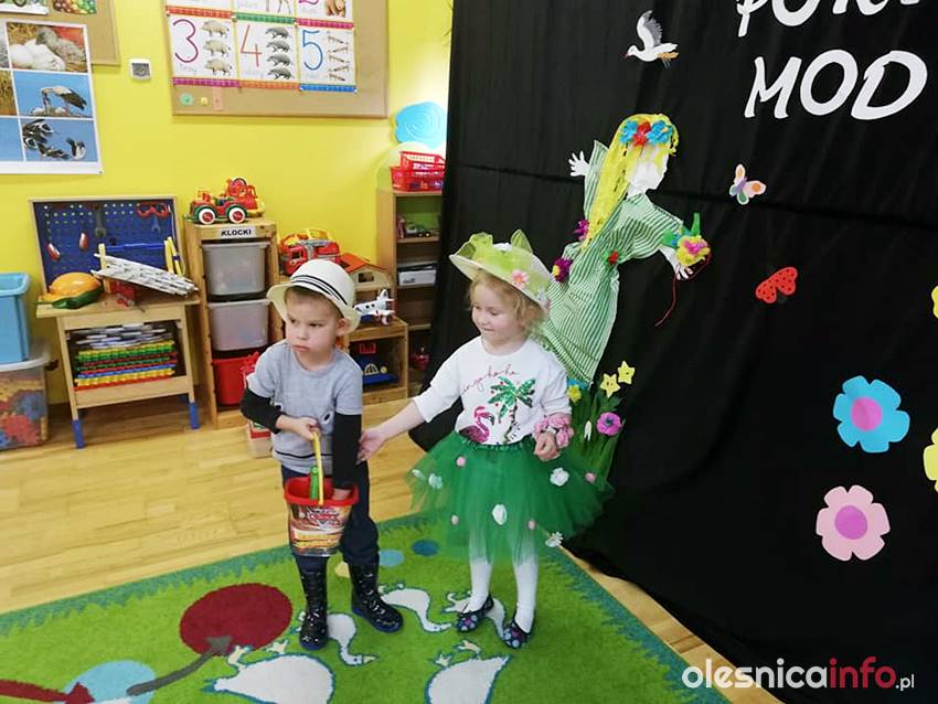 Przedszkolaki żegnają zimę a witają wiosnę. Zobaczcie jak wyglądał wiosenny pokaz mody w oleśnickim przedszkolu.