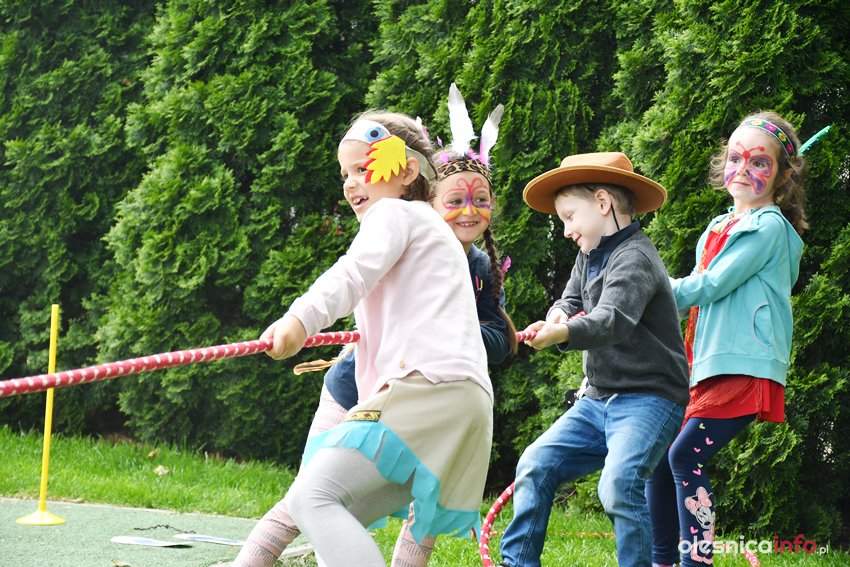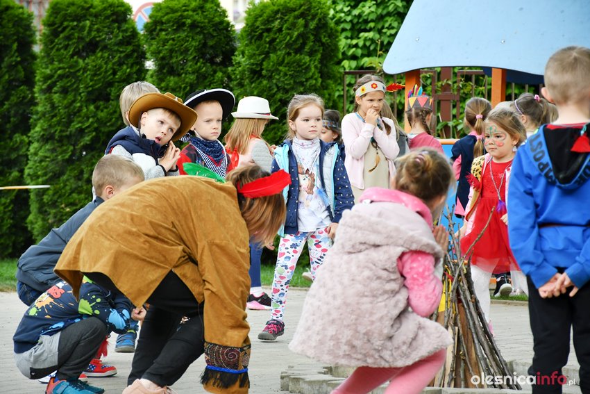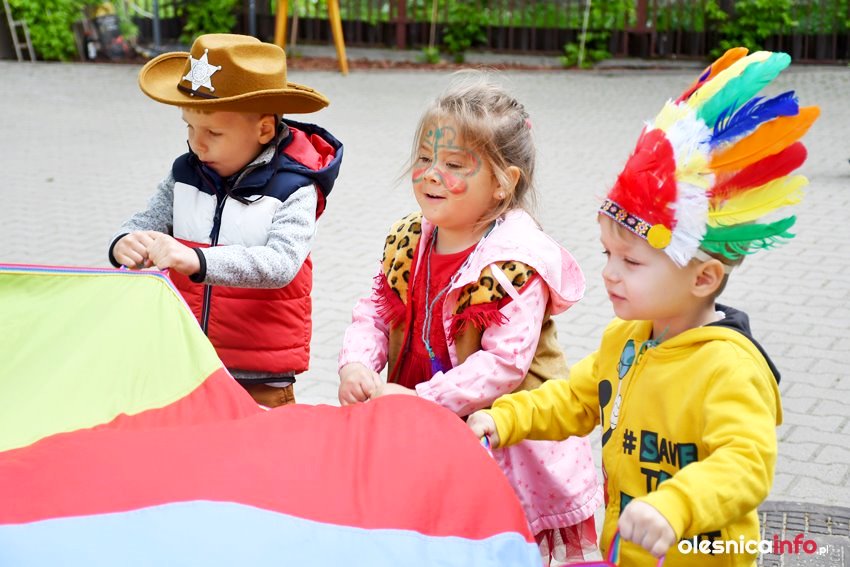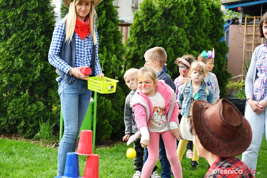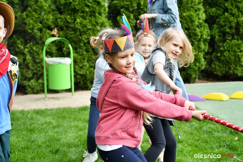 Dzieci z Przedszkola nr 1 w Oleśnicy zaproszono na szaloną zabawę na Dzikim Zachodzie. Wszystko z okazji Dnia Dziecka, który zorganizowały panie opiekunki z placówki. Przygotowano szereg atrakcji m.in. malowanie twarzy, tor z przeszkodami, rozpalanie ogniska czy bieg w jutowych workach. Po wyczerpujących konkurencjach sportowych przyszedł też czas na coś dla ciała, czyli smaczne kiełbaski z grilla.