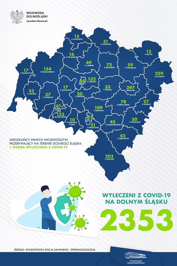 W sumie liczba osób wyleczonych z COVID-19 w województwie dolnośląskim: 2353.