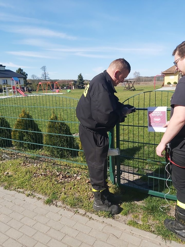 W związku z wprowadzeniem zakazu korzystania z terenów zielonych, parków, placów zabaw oraz zewnętrznych siłowni ogrodzono, zabezpieczono i oznakowano place zabaw, siłownie oraz parki na terenie miasta i gminy Bierutów.  W szybkim zabezpieczeniu wszystkich miejsc pomocna była jednostka OSP Bierutów.