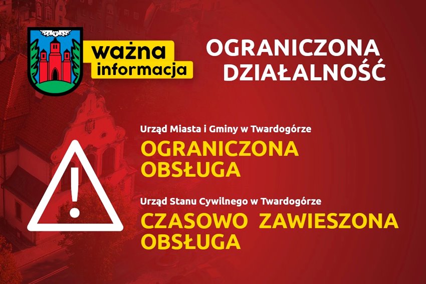 Z powodu rozwijającej się sytuacji epidemicznej do 30 października ograniczona zostaje obsługa mieszkańców w Urzędzie Miasta i Gminy w Twardogórze.