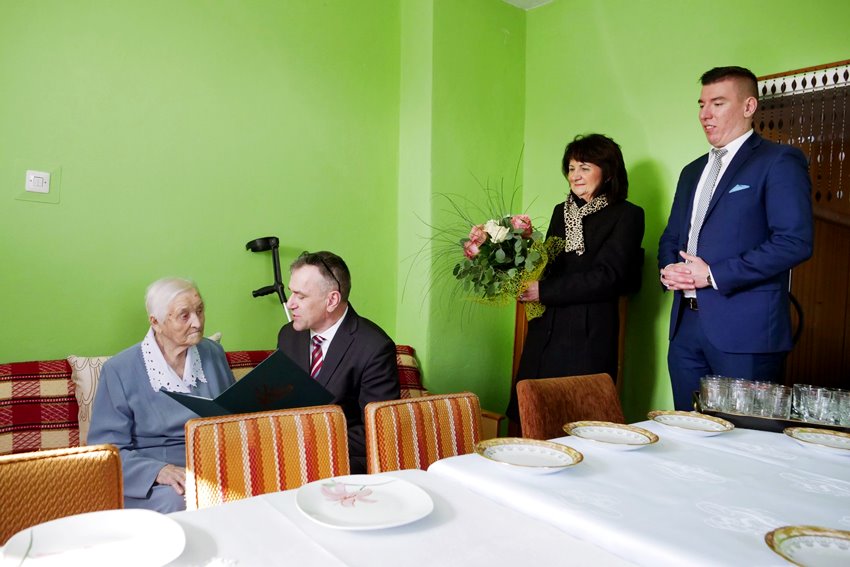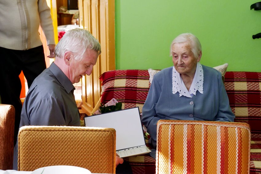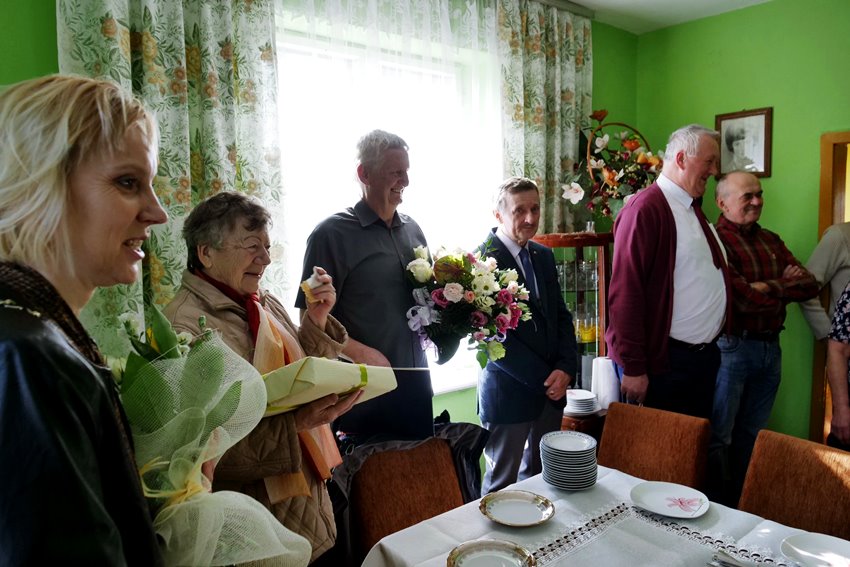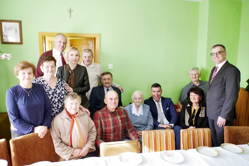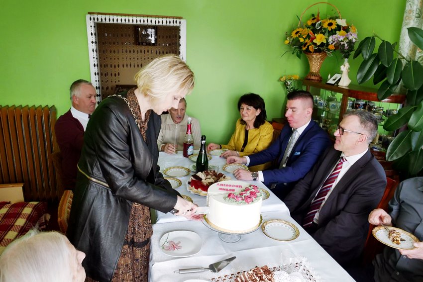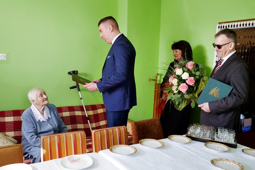 Sędziwą jubilatkę odwiedzili m.in. burmistrz Sycowa Dariusz Maniak oraz kierownik Oddziału Terenowego KRUS Wojciech Kociński.