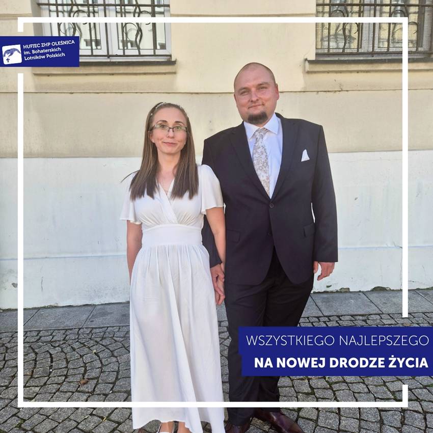 Związek małżeński zawarli hm. Marlena Piotrowska oraz pwd. Dominik Szulc – dwoje instruktorów Hufca ZHP Oleśnica, których wspólna droga rozpoczęła się właśnie w harcerstwie.