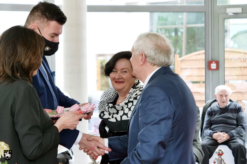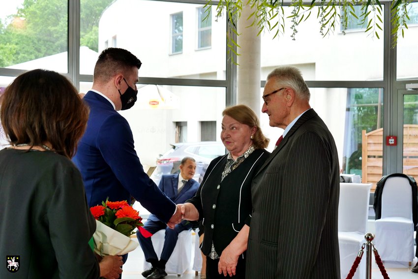Burmistrz Sycowa Dariusz Maniak, wręczył ponadto gratulacje dla par, które przeżyły 60 i więcej lat wspólnego życia. W trakcie przemówienia podkreślił, że takie uroczystości napawają optymizmem i jednocześnie są dla młodych ludzi wyzwaniem oraz świadectwem małżeńskiej wierności. W uroczystości wzięli udział ponadto przedstawiciele sycowskiego USC – Beata Jagodzińska oraz Zofia Wach, a także radni miejscy – przewodniczący RM Robert Dziergwa, Marek Malinowski oraz Danuta Nowicka. Ze względów pandemicznych wręczenie podzielone zostało na dwa dni.