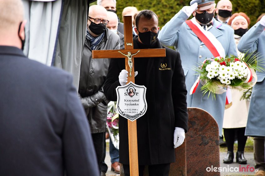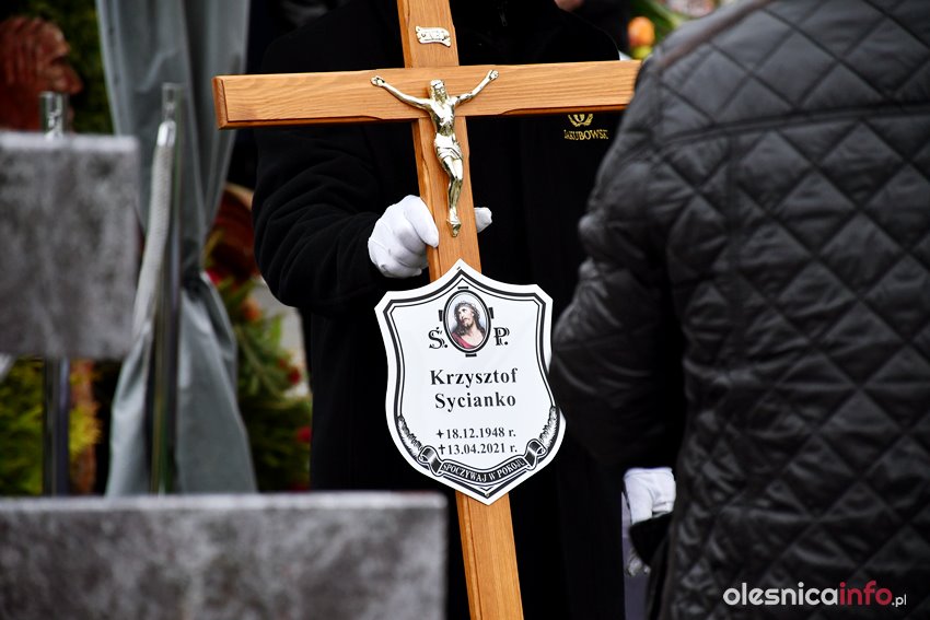 Uroczysta msza św. pogrzebowa odbyła się w kościele NMP Matki Miłosierdzia. Stamtąd kondukt pogrzebowy przeniósł się na cmentarz przy ul. Wileńskiej. Krzysztof Sycianko zmarł 13 kwietnia. Był wieloletnim samorządowcem gminnym i powiatowym. Stał na czele oleśnickiego obwodu Światowego Związku Żołnierzy Armii Krajowej, jednym z organizatorów Narodowego Dnia Żołnierzy Wyklętych w Oleśnicy. Mieszkańcy podoleśnickich gmin znali go także, jako uczynnego lekarza weterynarii. Podczas dzisiejszej uroczystości Krzysztofa Syciankę żegnali najbliżsi, mieszkańcy oraz samorządowcy. Obecni byli również posłowie Mirosława Stachowiak-Różecka i Paweł Hreniak, a także proboszczowie ks. Zdzisław Puduch, ks. Mieczysław Janczyszyn oraz ks. Władysław Ozimek.