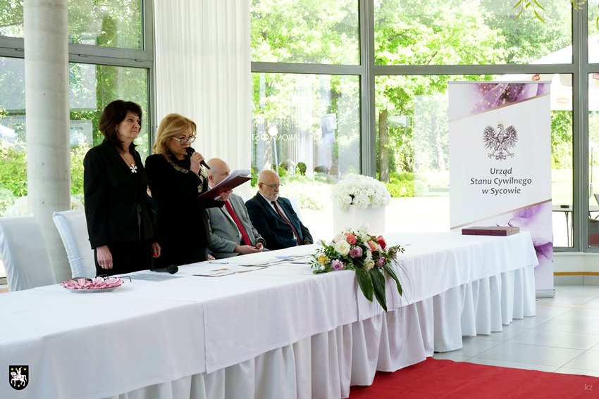 Burmistrz Sycowa Dariusz Maniak podziękował jubilatom za trud pracy w sycowskiej społeczności. Natomiast przewodniczący Rady Miejskiej Robert Dziergwa pogratulował jubilatom wytrwałości i życzył dużo zdrowia i kolejnych lat wspaniałego życia.W uroczystości wzięli udział przedstawiciele sycowskiego USC – Beata Jagodzińska oraz Zofia Wach oraz radni Zenon Staniewicz i Marzena Guder.