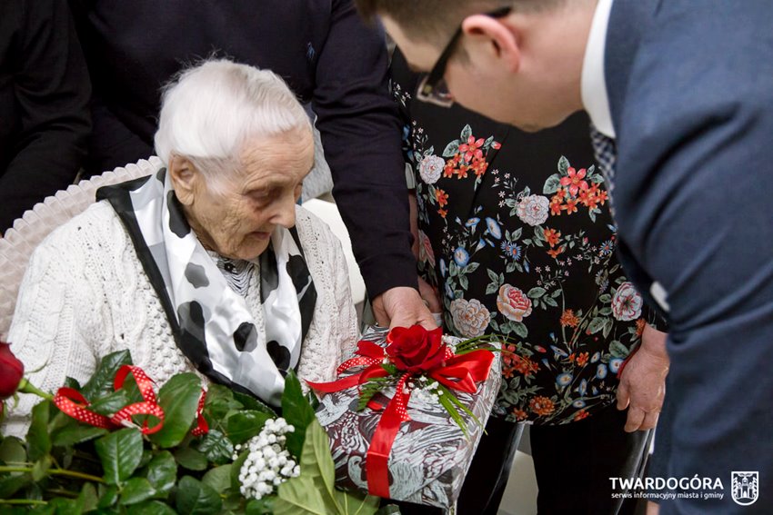 Mieszkanka Twardogóry, Rozalia Jędryczko obchodziła niedawno swoje 100 urodziny. Z tej okazji odwiedził ją burmistrz Paweł Czuliński, który złożył jubilatce życzenia, wręczył kwiaty i drobne upominki. W trakcie spotkania nie zabrakło rodzinnych wspomnień, tortu oraz własnego wiersza o Twardogórze – wyrecytowanego przez Panią Rozalię.
