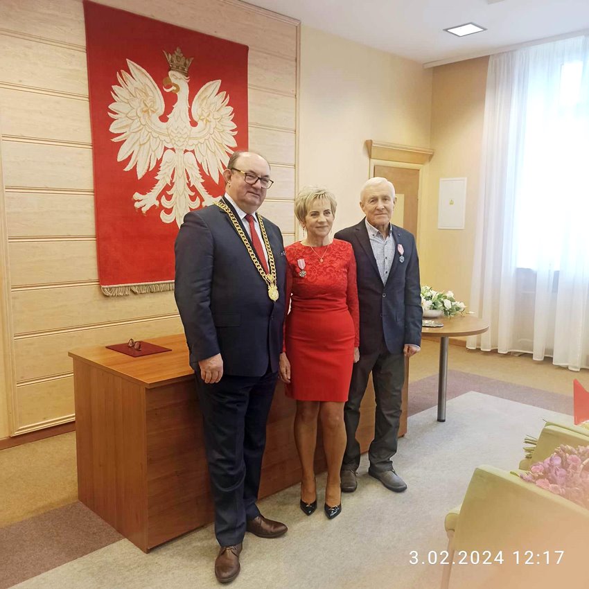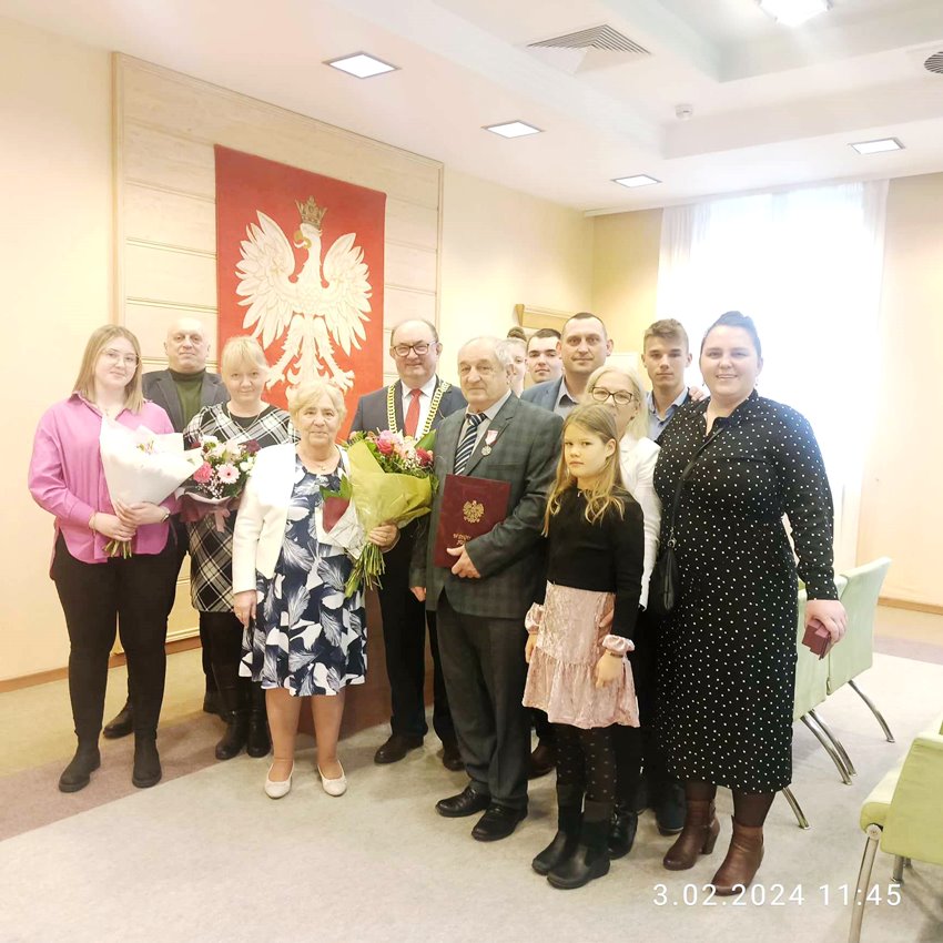 Jubilaci zostali odznaczeni Medalami za Długoletnie Pożycie Małżeńskie przyznanymi przez Prezydenta RP Andrzeja Dudę! Odebrali je w ratuszu i w domu z rąk burmistrza Jana Bronsia.