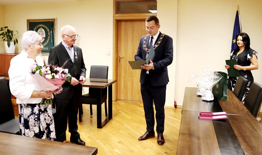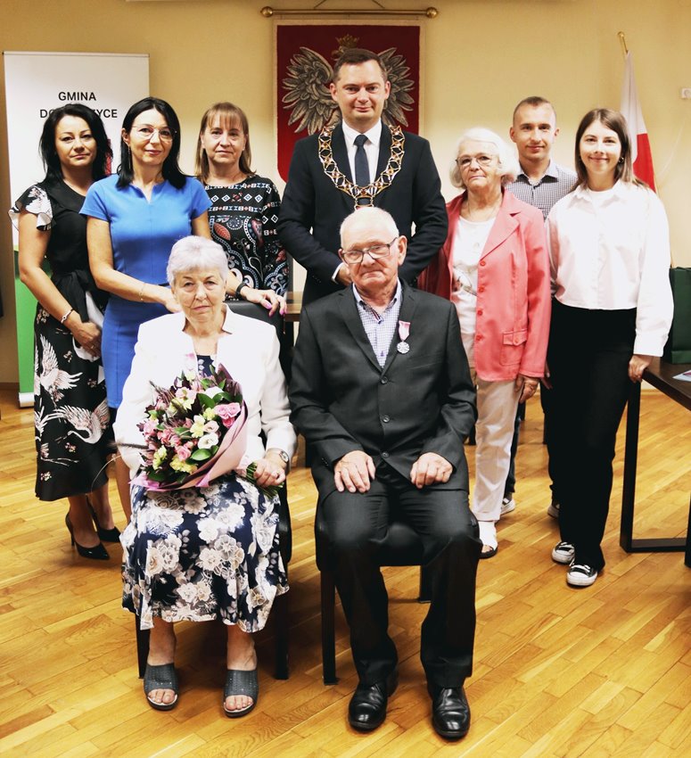 Uroczystość poprowadziła Sekretarz Gminy Monika Hołówka, zaś Wójt Artur Ciosek wręczył przekazane od Prezydenta Rzeczpospolitej Polskiej Medale za Długoletnie Pożycie Małżeńskie oraz legitymacje.