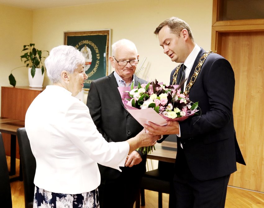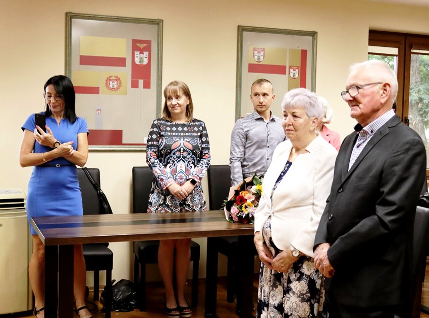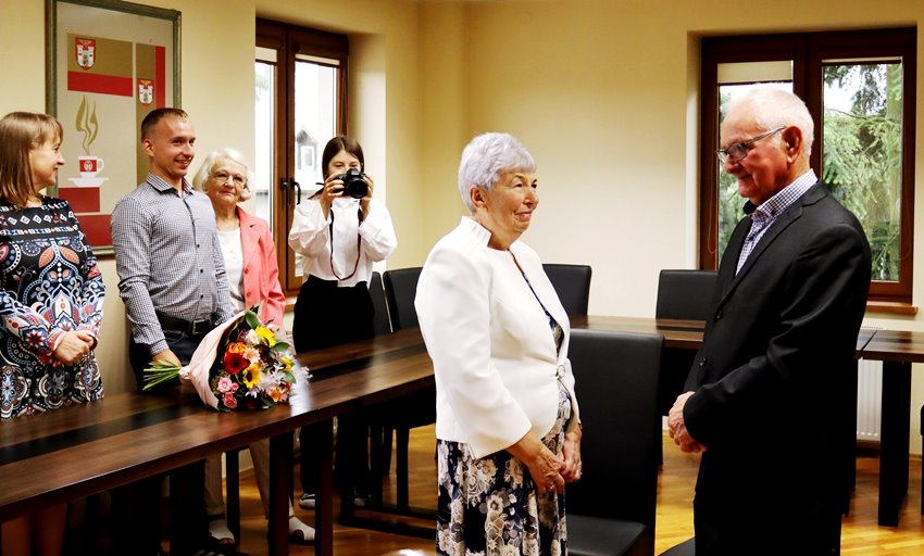 Złożył on także serdeczne gratulacje oraz życzenia wielu kolejnych lat przeżytych w zdrowiu, miłości oraz wzajemnym szacunku. Wójt wręczył Złotej Parze także dyplom okolicznościowy, kwiaty oraz upominek.