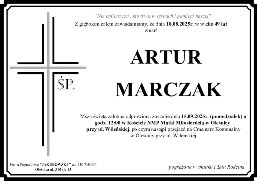 18 sierpnia w wieku 49 lat zmarł Artur Marczak.