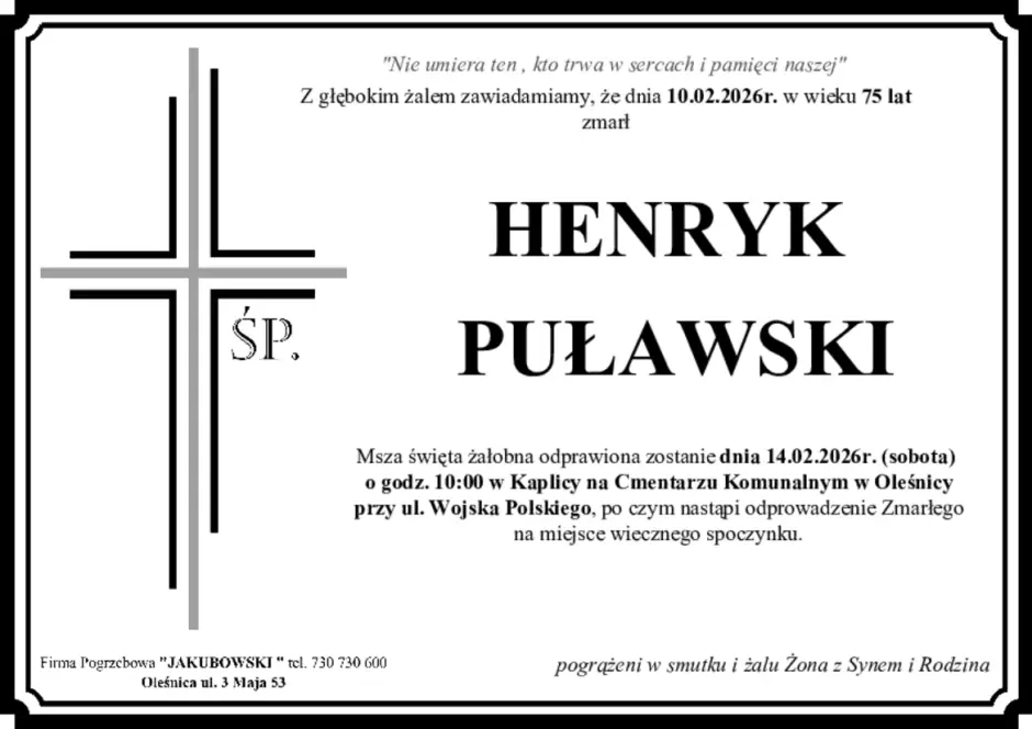 10 lutego w wieku 75 lat zmarł Henryk Puławski.