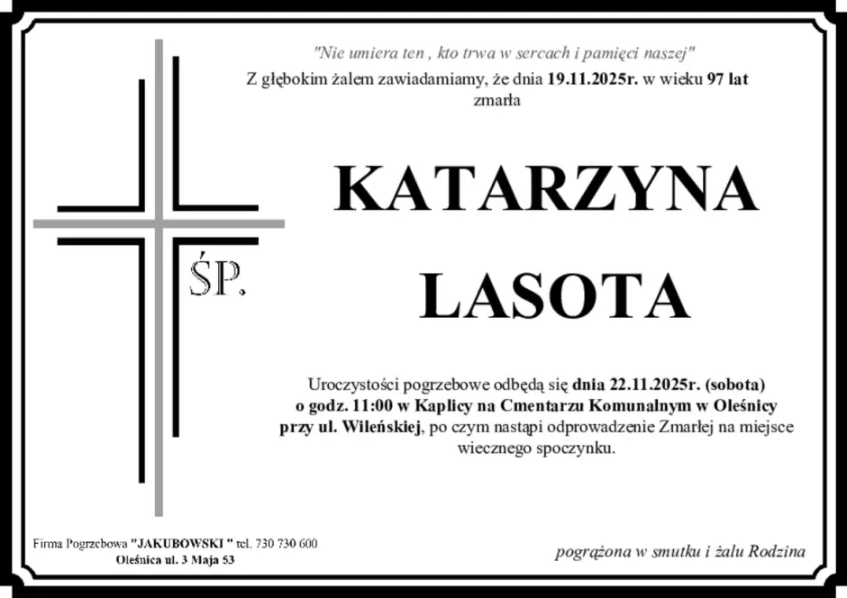 19 listopada w wieku 97 lat zmarła Katarzyna Lasota.