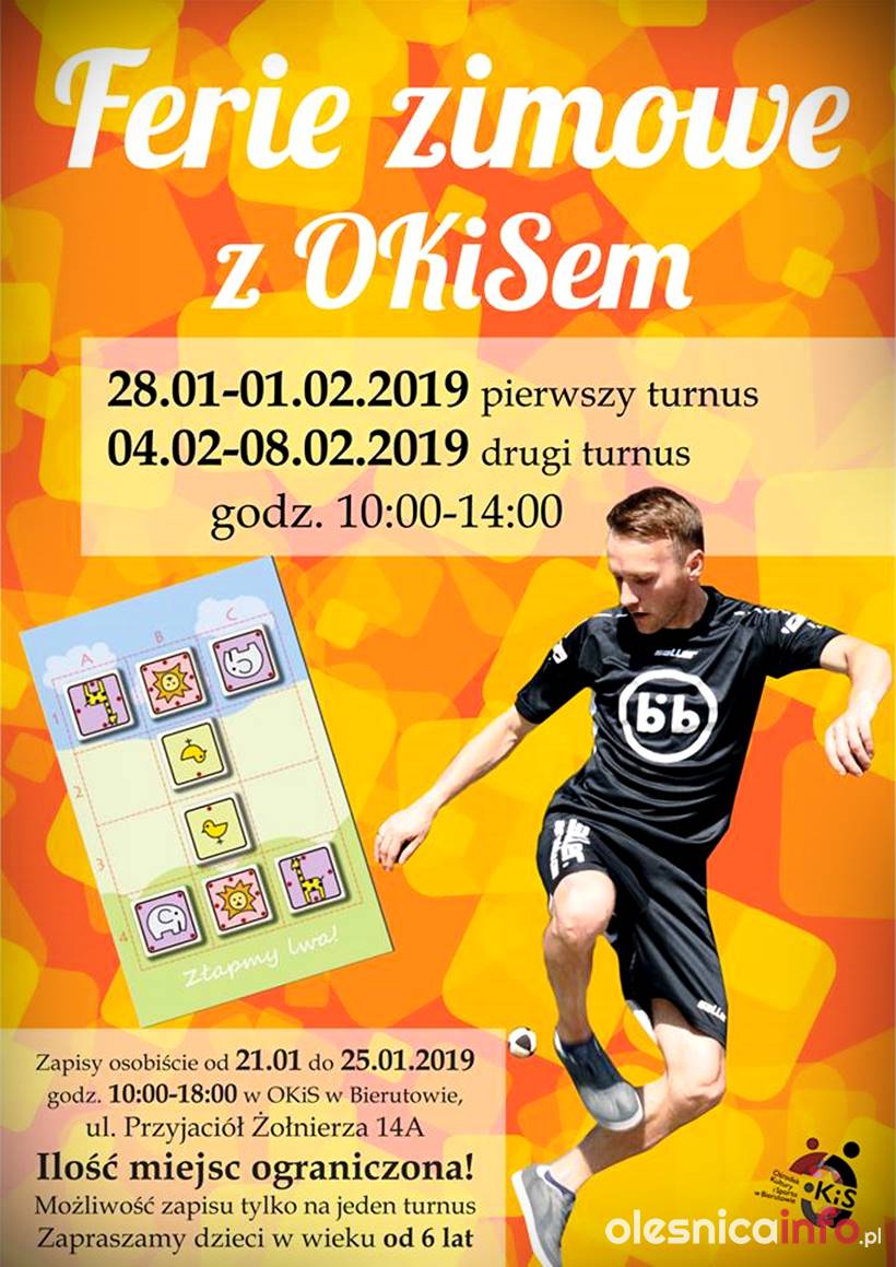 Udział w zajęciach dla dzieci i młodzieży z terenu gminy Bierutów jest bezpłatny. Z powodów organizacyjnych obowiązują zapisy w OKiS w Bierutowie ul. Przyjaciół Żołnierza 14 A.
