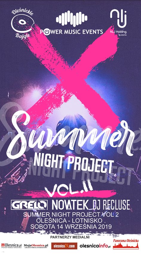 – Line-Up tej wyjątkowej nocy będą tworzyli Grelo, Novatek oraz DJ Recluse, którzy znani są już oleśnickiej publiczności, chociażby z poprzedniej edycji Summer Night Project oraz występów w klubach w naszym mieście – informują organizatorzy. Bilety do nabycia są w przedsprzedaży w cenie 25 złotych, a w dzień eventu 35 złotych na bramce wejściowej. Wejściówki są do nabycia w lokalnych punktach: Dwór Spalice, Oleśnickie Bajgle, Power Music Events. Ilość biletów jest ograniczona.
