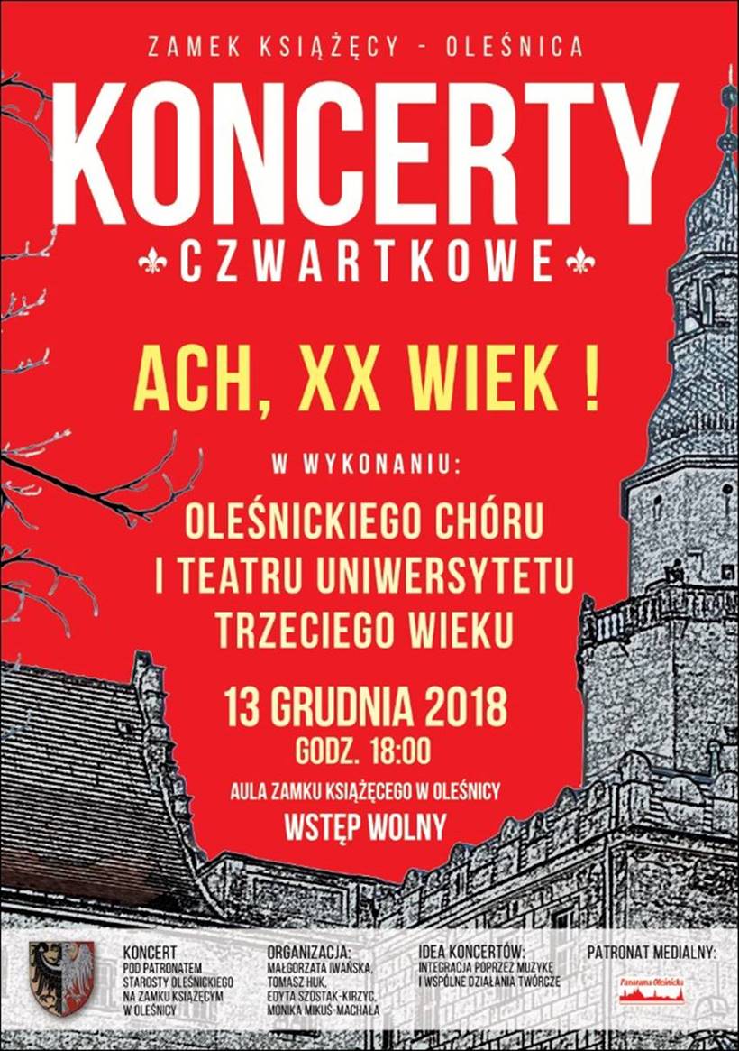 W programie zatytułowanym „Ach, XX wiek!” wystąpi Oleśnicki Chór i Teatr Uniwersytetu III Wieku. Początek o godz. 18.