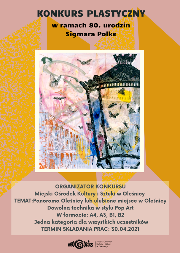 13 lutego 2021 r. przypadła 80. rocznica urodzin Sigmara Polke, który urodził się w Oleśnicy, dawnej Oels. Z tej okazji Miejskie Ośrodek Kultury i Sztuki ogłasza konkurs plastyczny, którego celem jest poznanie twórczości Sigmara Polke, wykorzystanie różnych technik malarskich w połączeniu z formami plastycznymi odwołującymi się do wyobraźni i zmysłu przestrzennego. Prace konkursowe można składać do 31.03.2021.