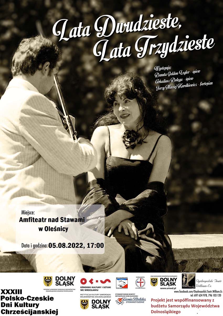 Koncert „Lata dwudzieste, lata trzydzieste” w wykonaniu Ogólnopolskiego Teatru William.Es z Wałbrzycha odbędzie się w ramach XXIII Polsko-Czeskich Dni Kultury Chrześcijańskiej na Dolnym Śląsku. – Występ będzie powrotem do niezapomnianych mimo upływu czasu przebojów takich jak: „Zimny drań”, „Ja się boję sama spać”, „Seksapil”, „Dulcynea”, „Miłość ci wszystko wybaczy”, „Umówiłem się z nią na dziewiątą”, „Ostatnia niedziela” i wiele innych – informują organizatorzy.
