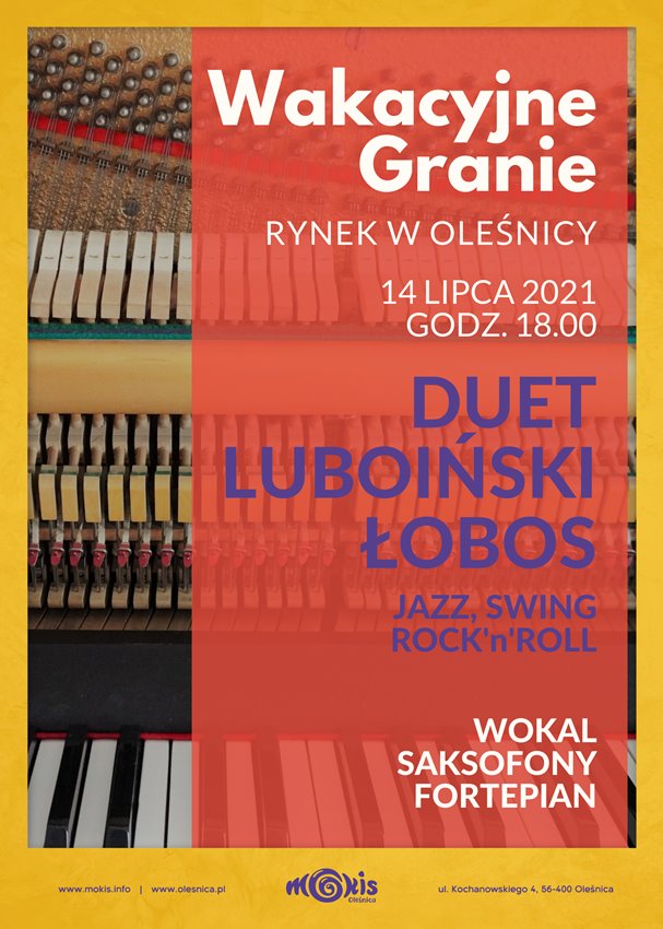 Miejski Ośrodek Kultury i Sztuki w Oleśnicy zaprasza 14 lipca od godziny 17.00 do oleśnickiego Rynku na kolejną odsłonę Animacji na Wakacje i koncert.