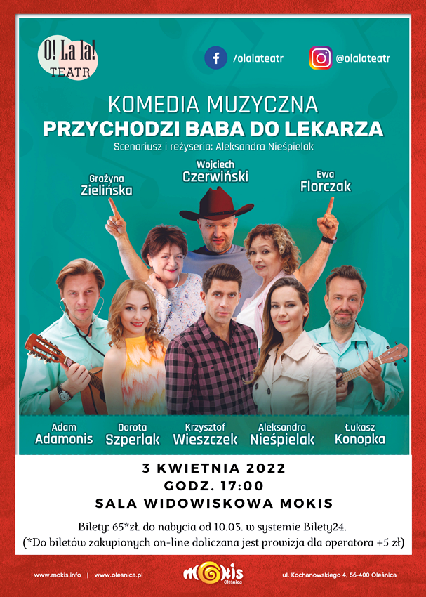 Miejski Ośrodek Kultury i Sztuki w Oleśnicy zaprasza 3 kwietnia o godzinie 17 do sali widowiskowej MOKiS na spektakl ,,Przychodzi baba do lekarza”.