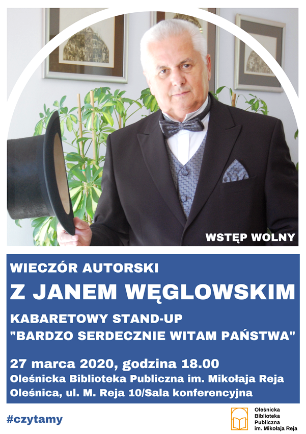 Oleśnicka Biblioteka Publiczna zaprasza na kolejny wieczór autorski. Tym razem gościem będzie Jan Węglowski.