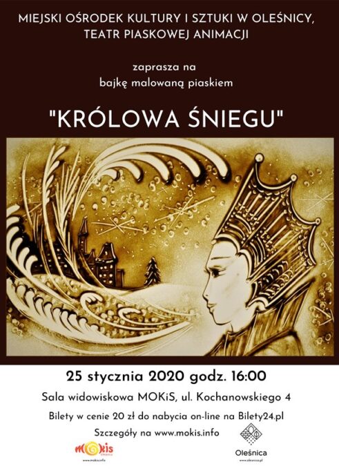 Miejski Ośrodek Kultury i Sztuki w Oleśnicy zaprasza 25 stycznia o godz. 16 do sali widowiskowej MOKiS na spektakl „Królowa Śniegu” w wykonaniu Teatru Piaskowej Animacji.