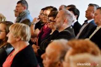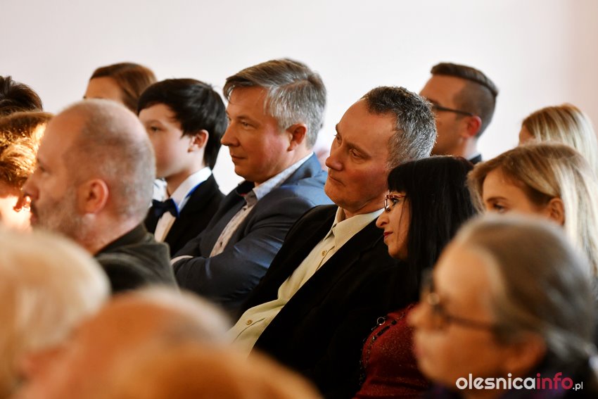 Na widowni zasiedli m.in. wojewoda Paweł Hreniak, burmistrz Jan Bronś, szefowe instytucji kultury Anna Zasada i Agata Szpiłyk oraz księża z oleśnickich parafii.