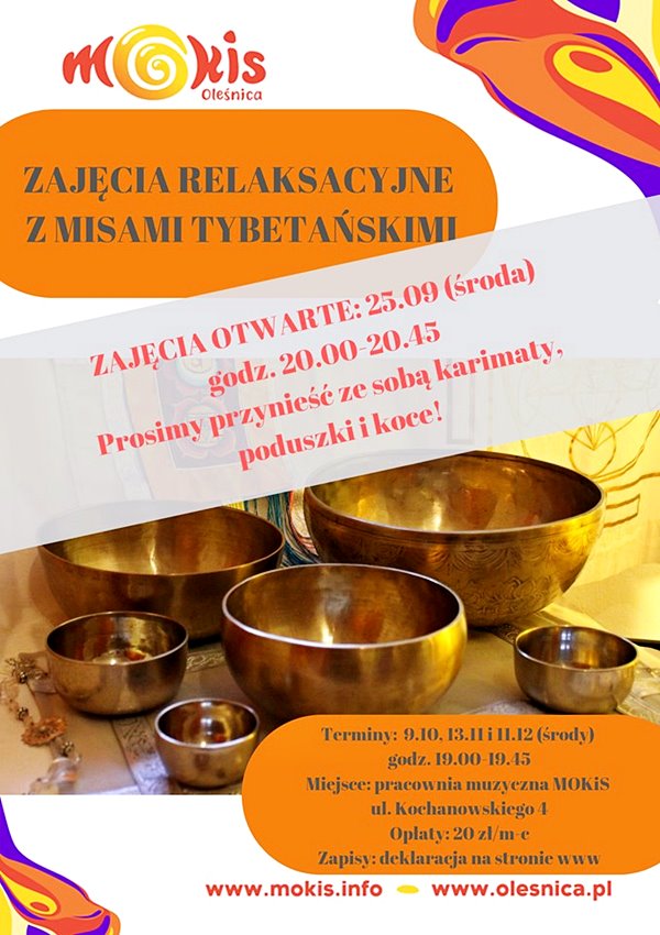Miejski Ośrodek Kultury i Sztuki zaprasza 25 września na bezpłatne otwarte zajęcia relaksacyjno-rozwojowe dla dorosłych.