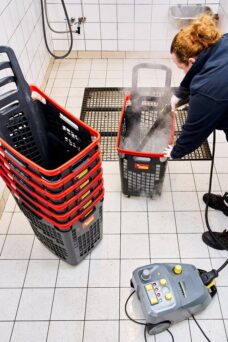 – Komfort i bezpieczeństwo klientów jest dla nas najwyższym priorytetem. Dlatego też kosze i wózki sklepowe w naszych sklepach są regularnie czyszczone przez wyspecjalizowane w tym zakresie firmy. Obecnie czystość wózków i koszyków sprawdzana jest z jeszcze większą uwagą, profilaktycznie zleciliśmy także częstsze ich czyszczenie. Co do samego procesu czyszczenia: kosze i wózki najpierw poddawane są namaczaniu przy wykorzystaniu wody i płynu dezynfekcyjnego o odpowiednim roztworze, a następnie trafiają do kąpieli parowej, przeprowadzanej standardowo w temperaturze 90°C. W jej trakcie do usuwania zanieczyszczeń stosowane są specjalne parownice wyposażone w szczotki, a także szorowarki i flizelinowe ścierki, zawsze jednorazowego użytku. Parownica czyści całą powierzchnię, na jakiej zostaje zastosowana i zabija obecne na niej zarazki – mówi Paweł Franczak, starszy specjalista ds. komunikacji korporacyjnej w sieci Biedronka.